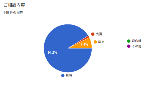 賃貸物件と売買物件の紹介頻度は等しいが、圧倒的に賃貸の相談が多く猫と暮らせる賃貸物件が求められていることがうかがえる。