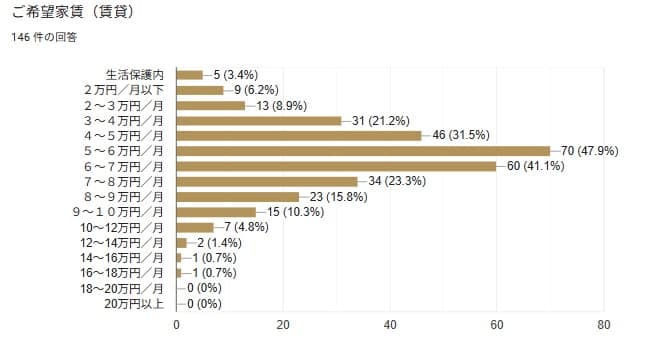 賃貸の場合、5~6万円の回答が47.9%と最も高く、ついで6~7万円が41.1%となっている(図8参照)。