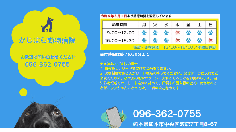 特徴:熊本市獣医師会所属。地域密着で最新の医療などについても飼い主様に寄り添ったご提案をしていただけます。